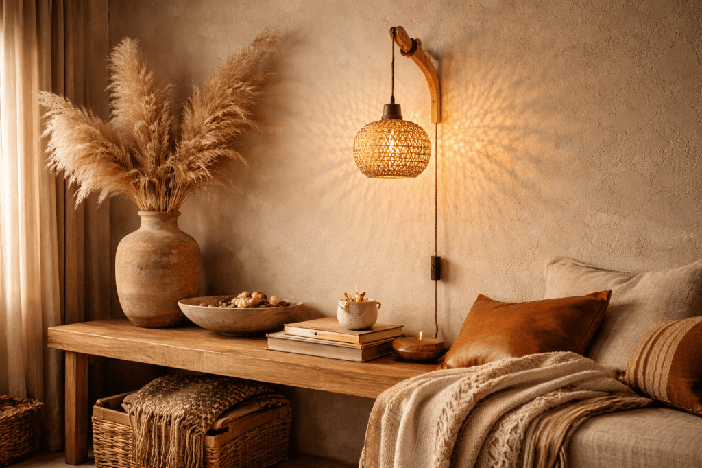 - Boho-inspired spaces with natural materials